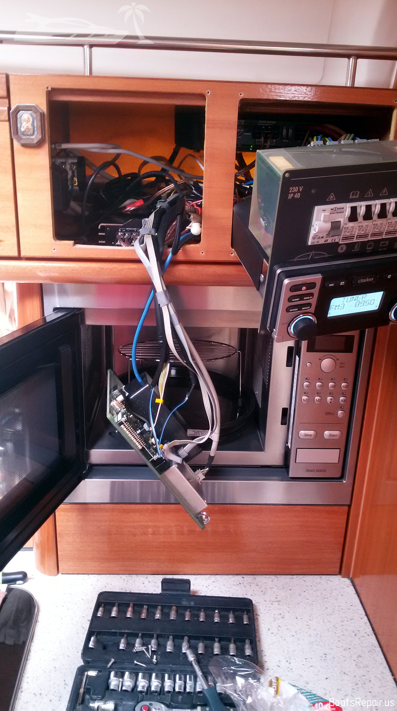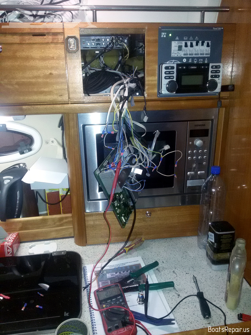This time we were looking for a reason why, sometimes, strange things happened with the light on the boat. In addition, we cleaned the motherboards with special chemical agents and applied a special protective layer of varnish to prevent corrosion in the future. Now everything works as it should. Let there be light! |