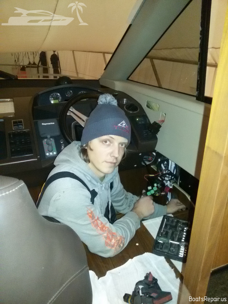 A window lifter on the side of the captain stopped working on this beautiful 56-foot Princess. Using unique tools, we carefully began to disassemble the panels, behind which there was a metal box with a lifting mechanism and a glass inside. We have done this job with dignity. We got to the mechanism of the window lifter, took it out, diagnosed, ordered a new electric motor, installed it and assembled all the parts according to the factory technology. Excellent work! |